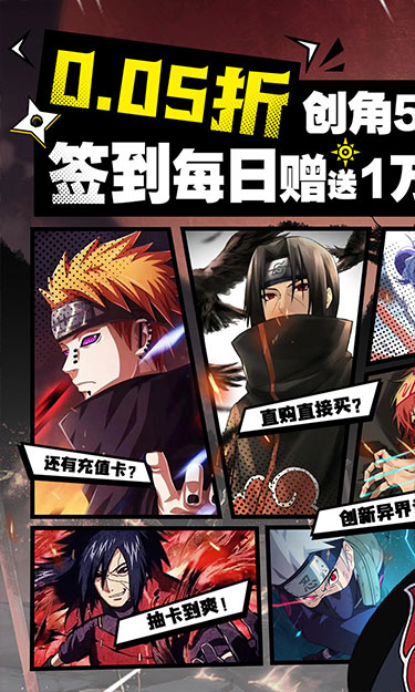 游戏内真实还原了旋涡鸣人一路成长的历程,一路挑战各个关卡,收入各个动漫里面脍炙人口的人物作为自己的伙伴,一起征战忍界!新版百万代金版本强势来袭,上线就送5万代金券+神话忍者自选*6,直接成就神话小队;游戏内还有波风天人等四个本游戏自创万能忍者,阵容搭配更加灵活。各种PVP、PVE等玩法,让手指根本停不下来,这个火影手游很有意思,快来加入我们吧!